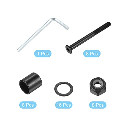PATIKIL 2" Skateboard Ferramenta Viti Bulloni Kit, 8pz Skate Montaggio Esagonale Chiave Parti con Distanziatori Rondelle Dadi Chiave per Skateboard Longboard Ruota Accessori, Nero