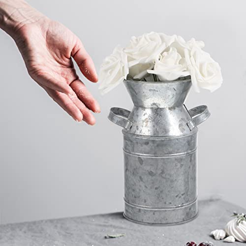 PATKAW Francese Shabby Chic Decorazioni Latte Latte in Fiore Pentola per di Latte per Il ' (Grigio) Latta Del Latte Vintage Barattolo Zincato