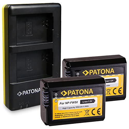 PATONA Caricabatteria Doppio con 2x Batteria NP-FW50 Compatibile con Sony NEX-3 NEX-5 NEX-7 NEX-C3 A33 A55