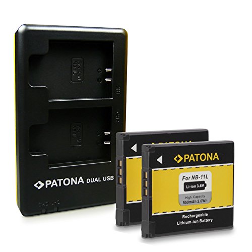PATONA Dual Caricabatteria + 2x Batteria NB-11L compatibile con Canon PowerShot A1400, A2300, A3400 IS con Micro USB