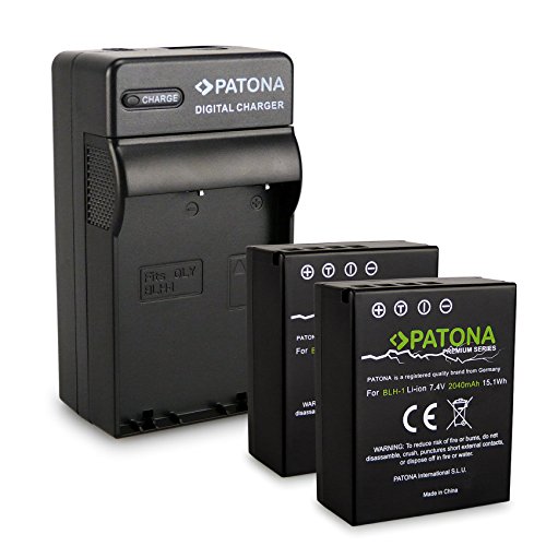 PATONA Caricabatteria + 2x Premium Batteria BLH-1 per Olympus EM-1 MARKII. Nota: Non completamente decodificato (Vedi descrizione prodotto)
