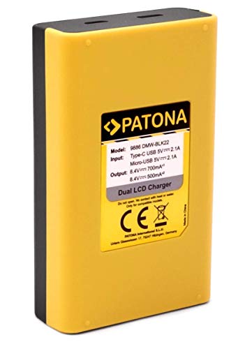 PATONA 9886 - Compatibile con batteria Panasonic DMW-BLK22 E - Caricatore USB Dual LCD 1888 - (ingresso USB-C o micro USB)