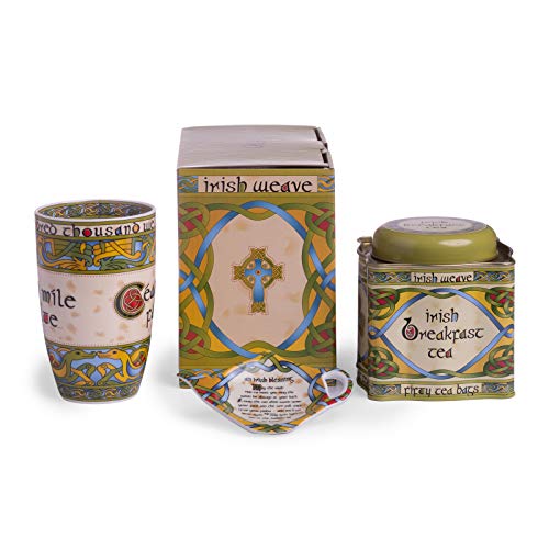 St. Patrick's Day Gourmet Cead Mile Failte - Set da tè irlandese con tazza da 396,9 g, porta bustine e 50 bustine di tè irlandesi in una scatola regalo abbinata.