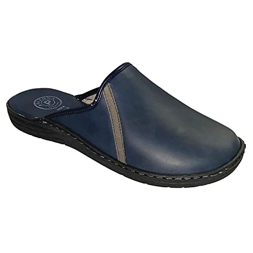 Patrizia Azzi Pantofola da Uomo comoda leggera foderata antiscivolo sottopiede vera pelle UN06 (42 EU, BLU, numeric_42)