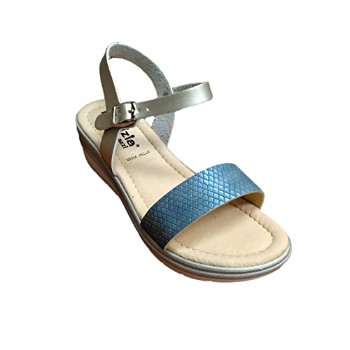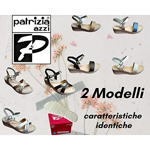 Patrizia Azzi Sandali Donna con Sottopiede Memory in Vera Pelle Ester 12 (1440 Turchese-Argento, numeric_36)