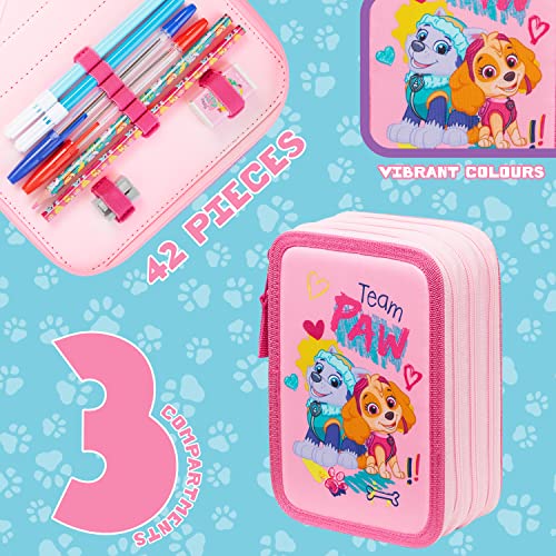 Paw Patrol Astuccio Scuola Triplo Doppio Porta Penne Completo di Cancelleria Scuola Astuccio Grande Marshall Chase Rubble Skye Astuccio Paw Patrol Back to School (Rosa Tripla Zip)
