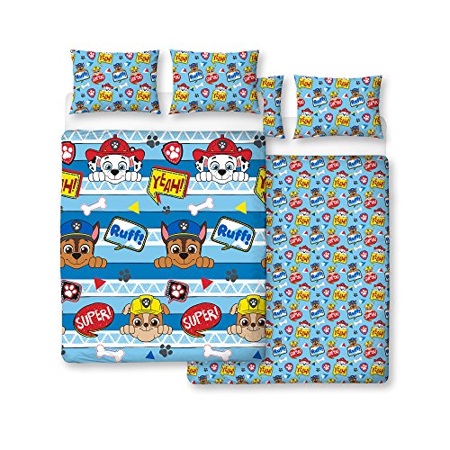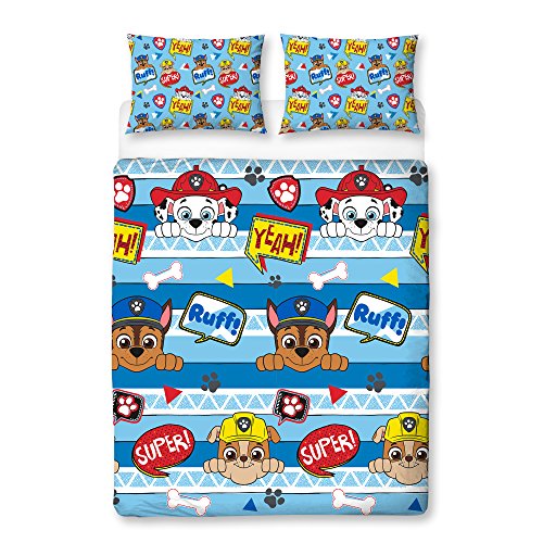 Paw Patrol Peek - Copripiumino matrimoniale per ragazzi, design reversibile su due lati, set di biancheria da letto per bambini con federe abbinate
