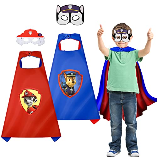 ND Paw Dog Patrol Cosplay Costumi per Bambini 2 Pezzi,Paw Dog Patrol Mantelli e Maschere,Paw Dog Patrol Cartoon Mantelli,Paw Dog Patrol Cosplay Maschere,Regali di Compleanno per Bambini e Bambine
