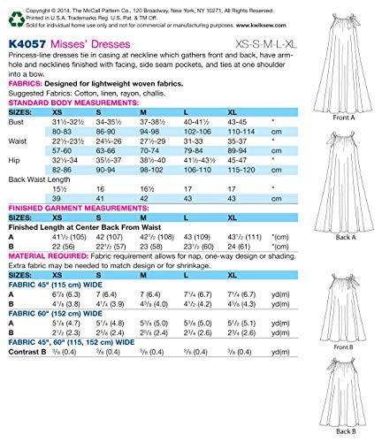 Kwik Sew Patterns K4057 - Cartamodello per Abito da Donna, Taglie Extra-Small - Small - Medium - Large - Extra-Large