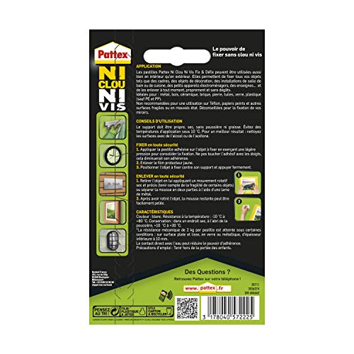 Pattex - Adesivi, 10 pastiglie, per fissaggio doppio,"senza chiodi e senza viti", Fix e Defix, 40 mm x 20 mm