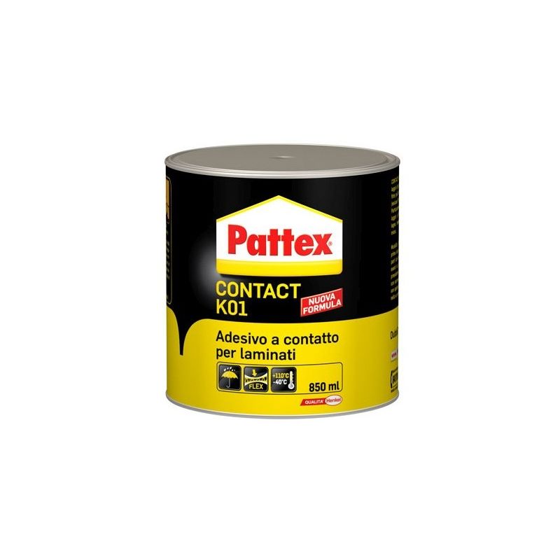 H. PATTEX CONTACT K01. Adesivo a contatto semifluido termoindurente, resistente a temperature fino a 130 C. Ideale per l''''incollaggio di metallo con se stesso o con materie plastiche rigide.''
