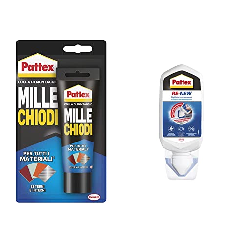 Pattex Millechiodi Esterni & Interni, adesivo extra forte per montaggi esterni & RE-NEW Bianco, Sigillante bagno e cucina per rinnovo fughe, Silicone sigillante bianco per rinnovare le fughe