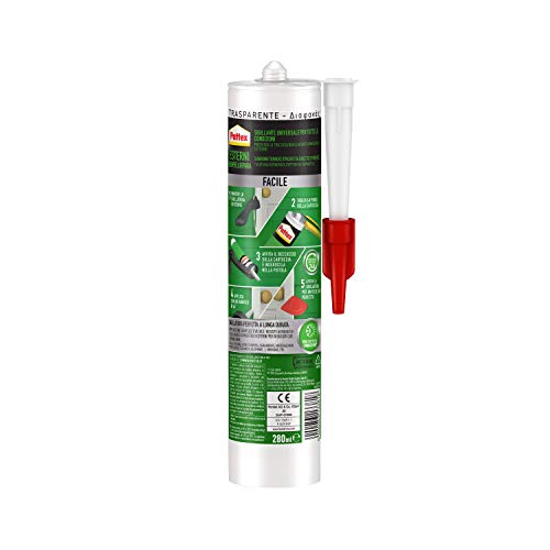 Contenuto - Pattex Esterni Riempie & Ripara sigillante resistente e impermeabile per infissi e simili, utilizzo anche a basse temperature, verniciabile, trasparente, 1x280ml cartuccia