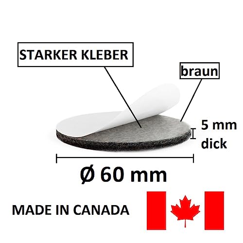 Pattini Feltrini Pellicole Protettivi Tappetini feltro rondo, circa 6,35 cm diam., feltro ultra-durevole, adesivo, 12 pezzi, marrone;