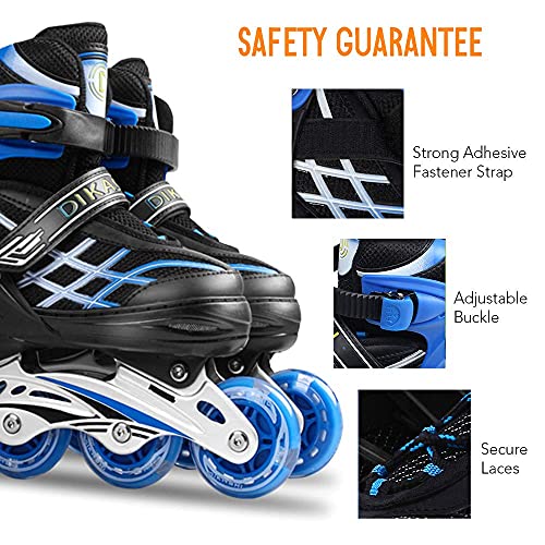 【Robusto】Il triplo sistema di chiusura (cinghia di fissaggio, fibbia regolabile e laccio sicuro) può ben fissare i pattini a rotelle sul piede, comodi da indossare;