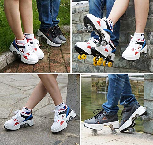 Pattini a Rotelle per Bambina e Donna Kick Roller Shoes, Deformate Scarpe con Ruote per Bambino, Calzature Sportive da Esterno per Unisex a Adulto, grigio-EU38/UK5.5