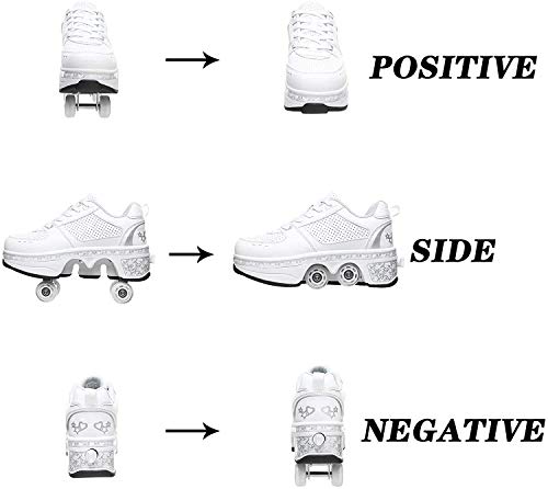SCARPE DA SKATE SNEAKERS 2 IN 1: Le ruote nascoste possono essere come normali scarpe sportive dopo essersi nascoste, quindi puoi regolare i pattini a rotelle, i pattini non solo possono pattinare ma anche correre.