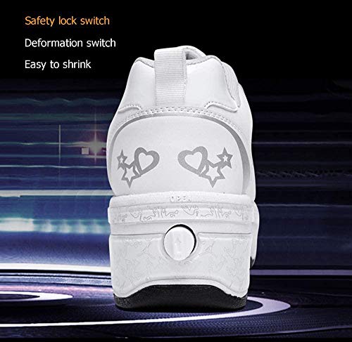 Qmj Pattini a Rotelle Bambina Scarpe con Rotelle Scarpe Pattini a Scomparsa Pattini a Rotelle Bambina Regolabili Scarpe Rotelle Scarpe Scarpe Roller Skate,White-EU37/UK4