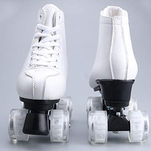 Pattini a Rotelle Bianchi per Donne e Uomini, Roller Skates Pattini 4 Rotelle Classici con Ruote in PU Illuminate a LED per Principianti All'aperto Per Interni Adolescenti per Adulti (EU35/ UK3)