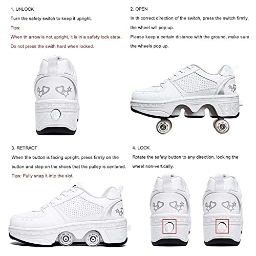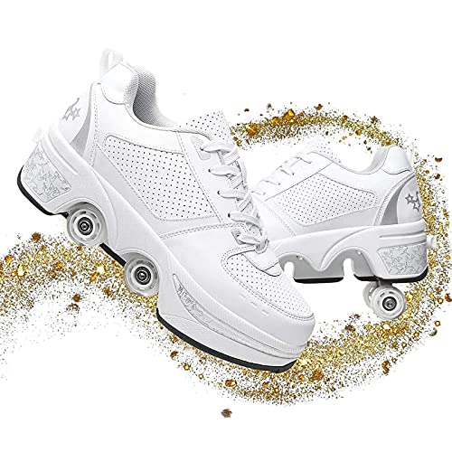 ZHYX Pattini a Rotelle Scarpe Uomo Donna Pattini a Quattro Ruote 2 in 1 Multi Purpose Scarpe Pattinaggio Calzature Sportive da Esterno,42