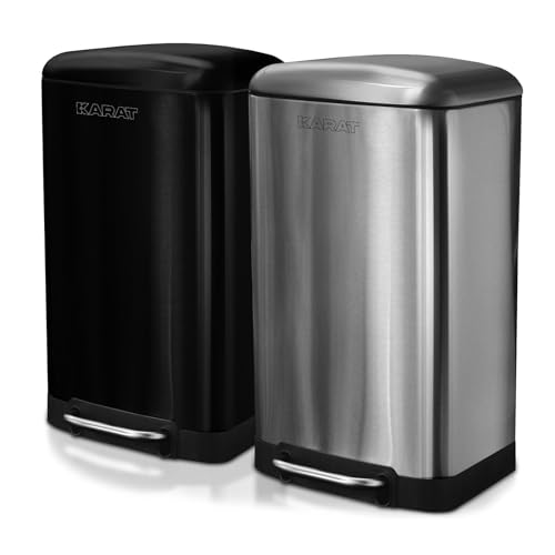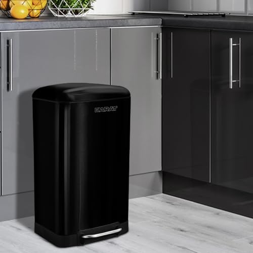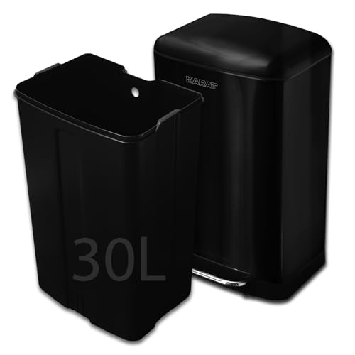 Pattumiera Cubo in acciaio inox 30 L - Pattumiera a pedale con abbassamento automatico - Secchio interno estraibile con maniglia - Pattumiera per cucina - Pattumiera per bagno (nero)
