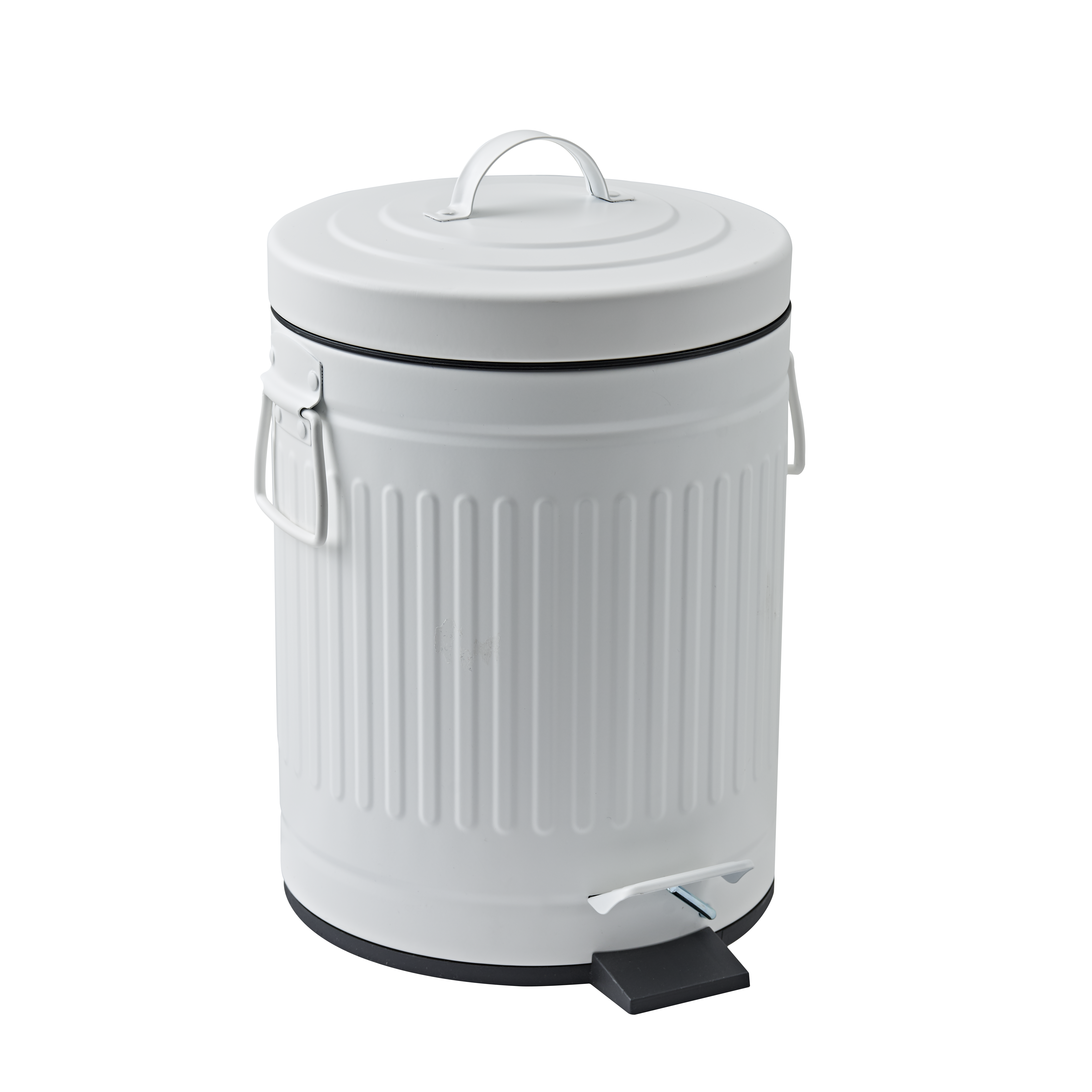 In acciaio. Il secchio interno è dotato di maniglie che lo rendono facile da svuotare. Grazie alla chiusura soft-closing, si chiude silenziosamente. Facile da spostare grazie alla maniglia posteriore