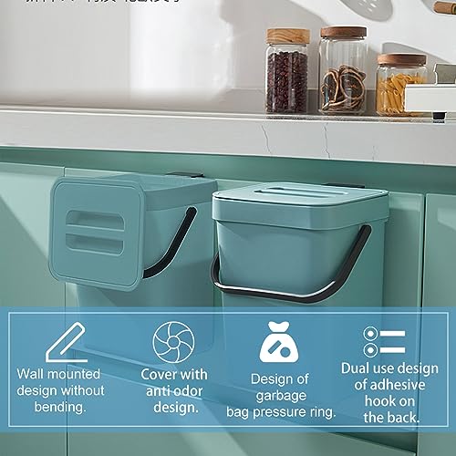 Pattumiera per Compostaggio da Cucina da 3L, Secchio per Compost Interno, Pattumiera con Coperchio, Con Contenitore per Appendere L'Armadio Facile da Pulire per i Rifiuti Biologici Quotidiani (Blu)