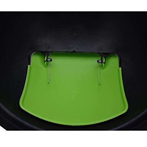 L'altezza della pattumiera complessiva è di 76 cm, senza il coperchio basculante con push di ritorno automatico a 2 molle è di 57 cm, la circonferenza superiore del bidone dell'immondizie è di 38,5 e quella inferiore di 30,5. E' in plastica nera con i co