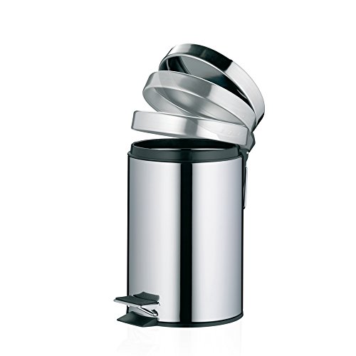Kela Pattumiera per Cosmetici Torre in Acciaio Inox 3L in Argento, Inossidabile, 17 x 17 x 25.5 cm