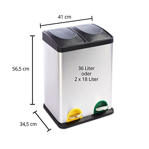 Casa pura Pattumiera per Differenziata da Interno - Bidoni Differenziata in Acciaio Inox - 2 Scomparti Estraibili da 36 L
