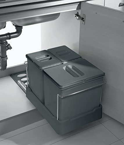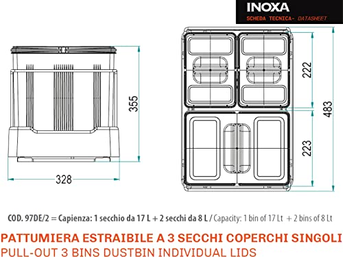 Pattumiera Estraibile Inoxa 97DE/2 a 3 Secchi di cui 1 da 17 Lt e 2 da 8 Lt con Coperchi Singoli