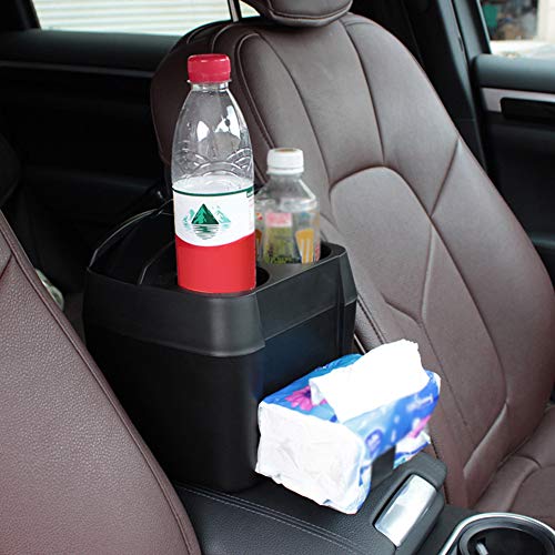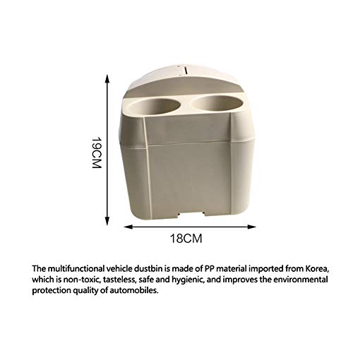 Pattumiera per Auto Organizer per console centrale auto Pattumiera per Auto con Portabicchieri Vano Portaoggetti per Auto Cestino per Spazzatura da Auto con coperchio Impermeabile 18 * 18 * 19CM