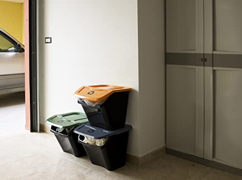 DEA HOME Pattumiera per raccolta differenziata ECOBIN, 3 scomparti da 30 lt, in plastica da interni ed esterni, art. 436, Nero/Coperchio Verde, Blu, Giallo