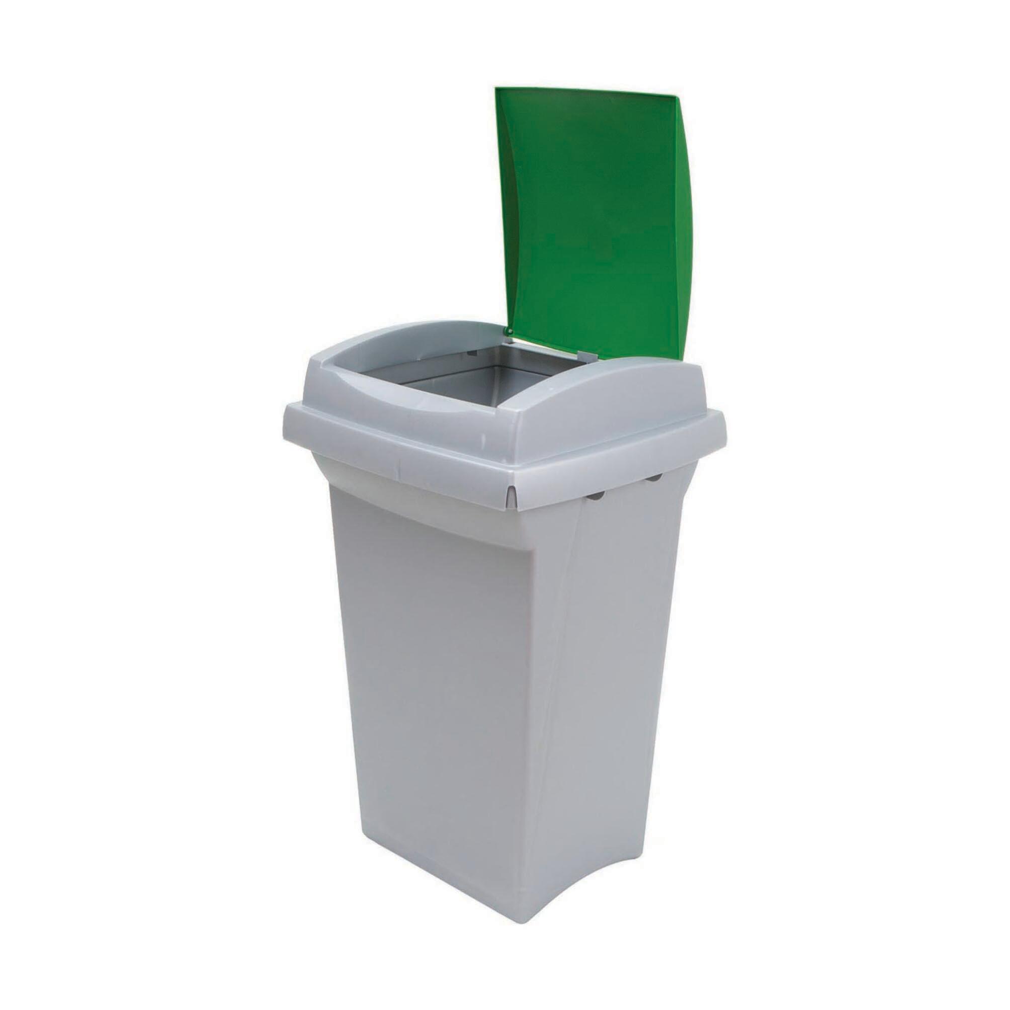 In plastica, dimensioni L 43 X H 68 X P 39 cm.. Ideale per la raccolta differenziata in ambienti esterni