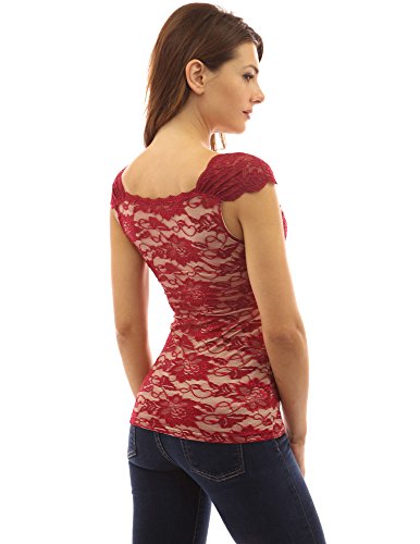PattyBoutik Donne Sovrapposizione di Pizzo con Scollo a V in Fila in Alto (Beige e Bordeaux 50)