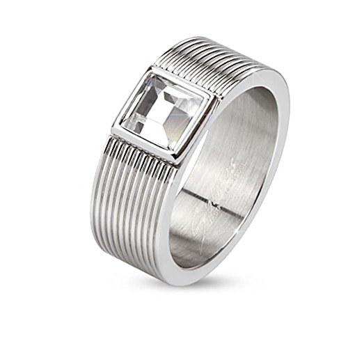 Paula & Fritz anello in acciaio inox chirurgico 316L acciaio argento 6 e 8 mm larghezza più volte a righe quadrata di pietra nel centro disponibile anello misure 47 (15) 69 (22) R m3903