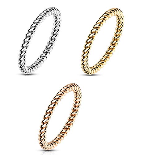 Paula & Fritz Anello da Donna 2 mm Sottile Intrecciato Come Anello in Argento Oro Rosa e Oro in Acciaio Inox Corda Intrecciata 47 (15)-57 (18.1) 50 (15.9), Gold, R-M6957G_60