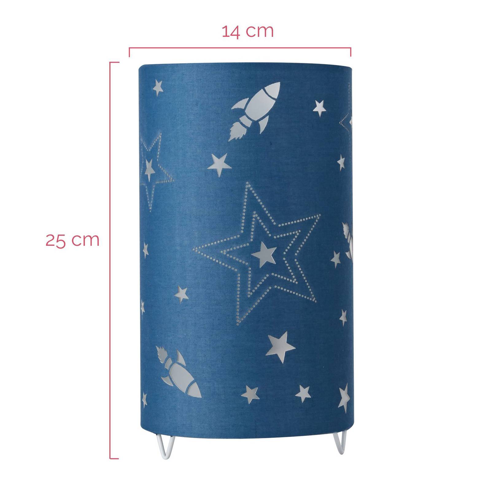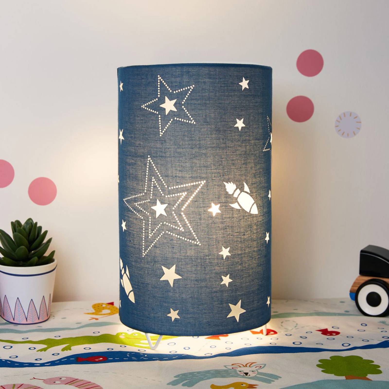 Lampada da tavolo Cute Universe con motivo a stelleIl paralume della lampada da tavolo rotonda Cute Universe fornisce un'illuminazione morbida e non abbagliante nella stanza dei bambini. Può essere posizionato, ad esempio, su uno scaffale o su una cassettiera. Un incavo in tessuto fa sì che la luce brilli attraverso le stelle e i razzi. In combinazione con la colorazione blu scuro, Cute Universe sembra un piccolo cielo stellato. Un effetto luce intelligente che piacerà ai bambini. Il design semplice e colorato fa sì che la lampada da tavolo si inserisca in modo discreto nella stanza dei bambini. La lampada da tavolo Cute Universe è dotata di cavo, spina e interruttore per accenderla e spegnerla.