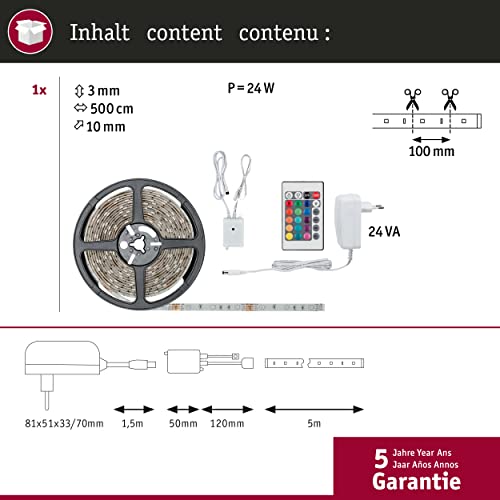 Paulmann 78978 Luminosa Universal Strip Light Interno 5 M Multicolore RGB, Bianco, 5m