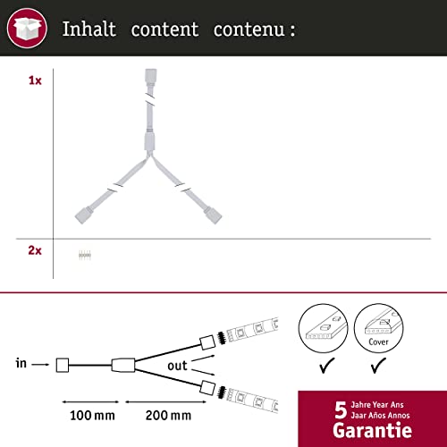 Paulmann 30cm 79813 Strip MaxLED Y-Splitter distribuzione 1 a 2 30 cm Max. 144 Watt Bianco Striscia Luminosa plastica Fascia LED