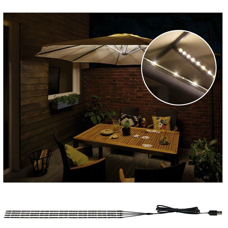 Striscia Cellulare Parasol Luce ombrello luce - Set di 4, 4x40cm Ideale per le calde serate estive all'aperto: il mobile Parasol strisce 4x40cm essere la sua flessibilità e il supporto adesivo attaccano facilmente per il vostro ombrello. Ci si fanno quando le tenebre in luce calda di aggregazione sociale. indietro autoadesivo per una facile installazione con connettore USB operare con la Banca di potere (non incluso) temperatura di colore: 3000K - bianco caldo Caratteristiche: dimensioni in mm: 400 profondità: 5, peso in grammi: 86 lampada inclusa: altezza: 3, larghezza incl 4x0,45 Watt colore della luce in gradi Kelvin: 3000 flusso luminoso: 30 di riduzione luminosità: No classe: classe III arte LED materiale: plastica Colore: nero