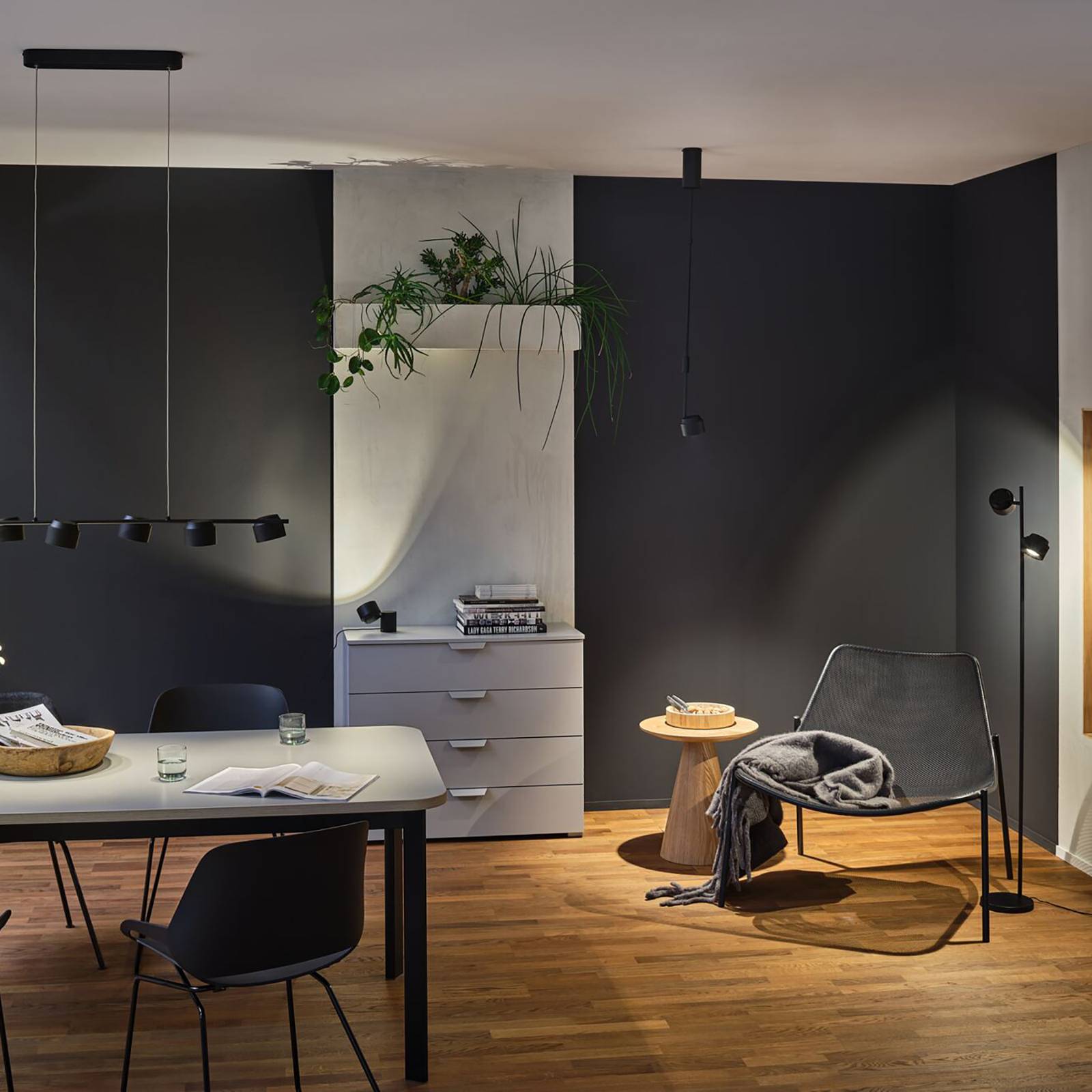 Lampada a sospensione a LED Puric Pane con sei spot regolabili, compatibile con ZigBee Puric Pane è una lunga lampada a sospensione per il tavolo da pranzo o un lungo bancone. Distribuiti su entrambi i lati del delicato fascio di luce, vi sono in totale sei spot, ciascuno dei quali può essere ruotato di 350° e orientato di 90°, che consentono di orientare la luce in base alle rispettive esigenze e di combinare illuminazione diretta e indiretta o di illuminare in modo mirato aree diverse. Ciascuno dei sei spot contiene una lente sfaccettata che dirige efficacemente la luce dei LED fuori dallo spot e rende l'apparecchio una sorgente luminosa efficiente. L'apparecchio a sospensione a LED è compatibile con ZigBee 3.0 e può quindi essere integrato in un sistema di illuminazione intelligente basato su questo standard radio, in modo da poter essere controllato con le apparecchiature corrispondenti tramite voce o app.