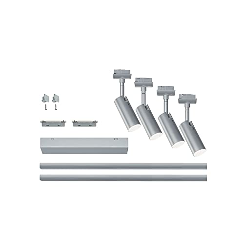 Paulmann LED Sistema a Binario URail Set Tubo, orientabile, faretto a soffitto 4 fuochi, 3000K Bianco Caldo, 5 W 20 W, Cromo Opaco, Cromo