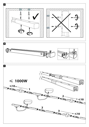 Superficie/colore: Nero opaco · Metallo · Max. potenza 1000 W · I cappucci terminali per il completamento della guida sono forniti con ingressi e conn