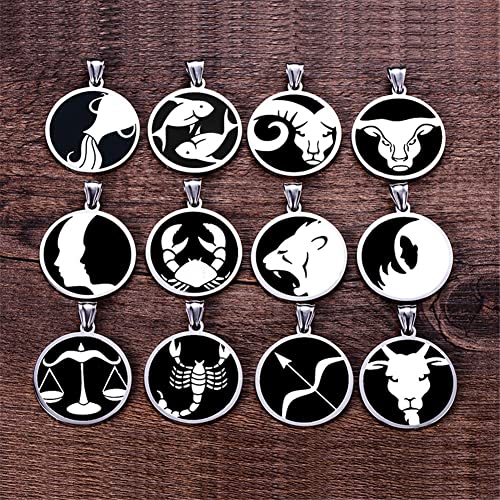 PAURO Uomo Acciaio Inossidabile Collana con Zodiaco con Sigillo Rotondo con 12 Costellazioni Argento Nero Capricorno