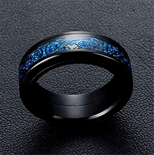 PAURO Uomo Acciaio Inossidabile Nero Drago Celtico Mosaico Blu Fibra Carbonica Anello Spinner 8Mm Band Misura 31
