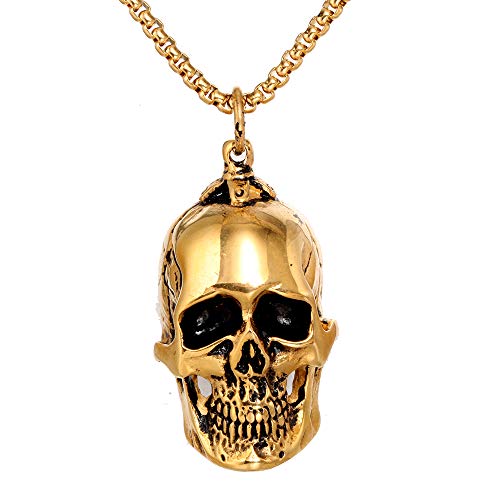 PAURO Uomo Acciaio Inossidabile Uomo in Acciaio Inox Gotico Biker Teschio Ciondolo Collana Punk Rock Oro Nero Vintage Medio