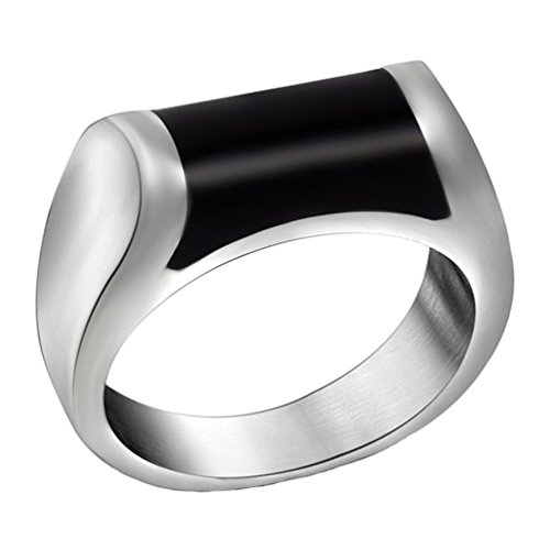 PAURO Annata Anello in Acciaio Inox Nero Smalto Anello Argento Dimensione 17