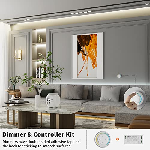 TOUCH DIMMING: supporta due tipi di strisce luminose, strisce luminose LED a temperatura di colore singola e strisce luminose LED CCT. Il dimmer a sfioramento vi libera dal fastidio di azionare più pulsanti e potete semplicemente far scorrere il pannello di regolazione per regolare la luminosità o la temperatura di colore della striscia luminosa.