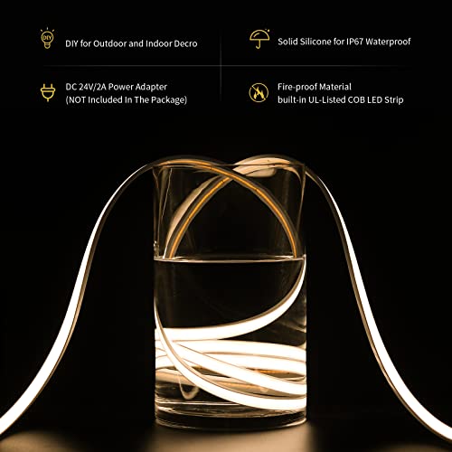 PAUTIX Strisce LED COB Bianco caldo 3000K DC24V, Impermeabile IP67 Strisce LED al neon dimmerabili 5M 504LEDs/m,CRI90+ Silicone Striscia luminosa flessibile fai da te per interni,cucina,decorazione